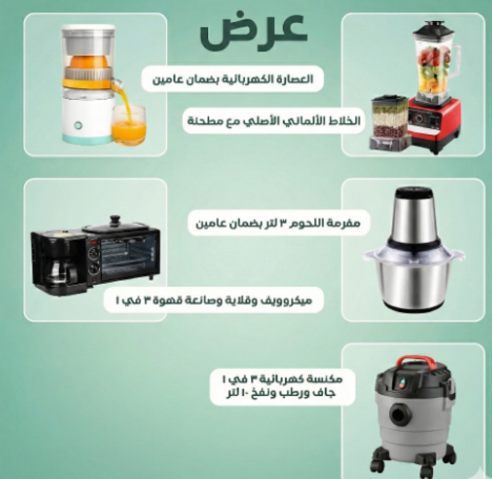 عرض الأجهزة المنزلية الذكي – مكنسة 3 في 1 ومجموعة مطبخ كهربائية بضمان